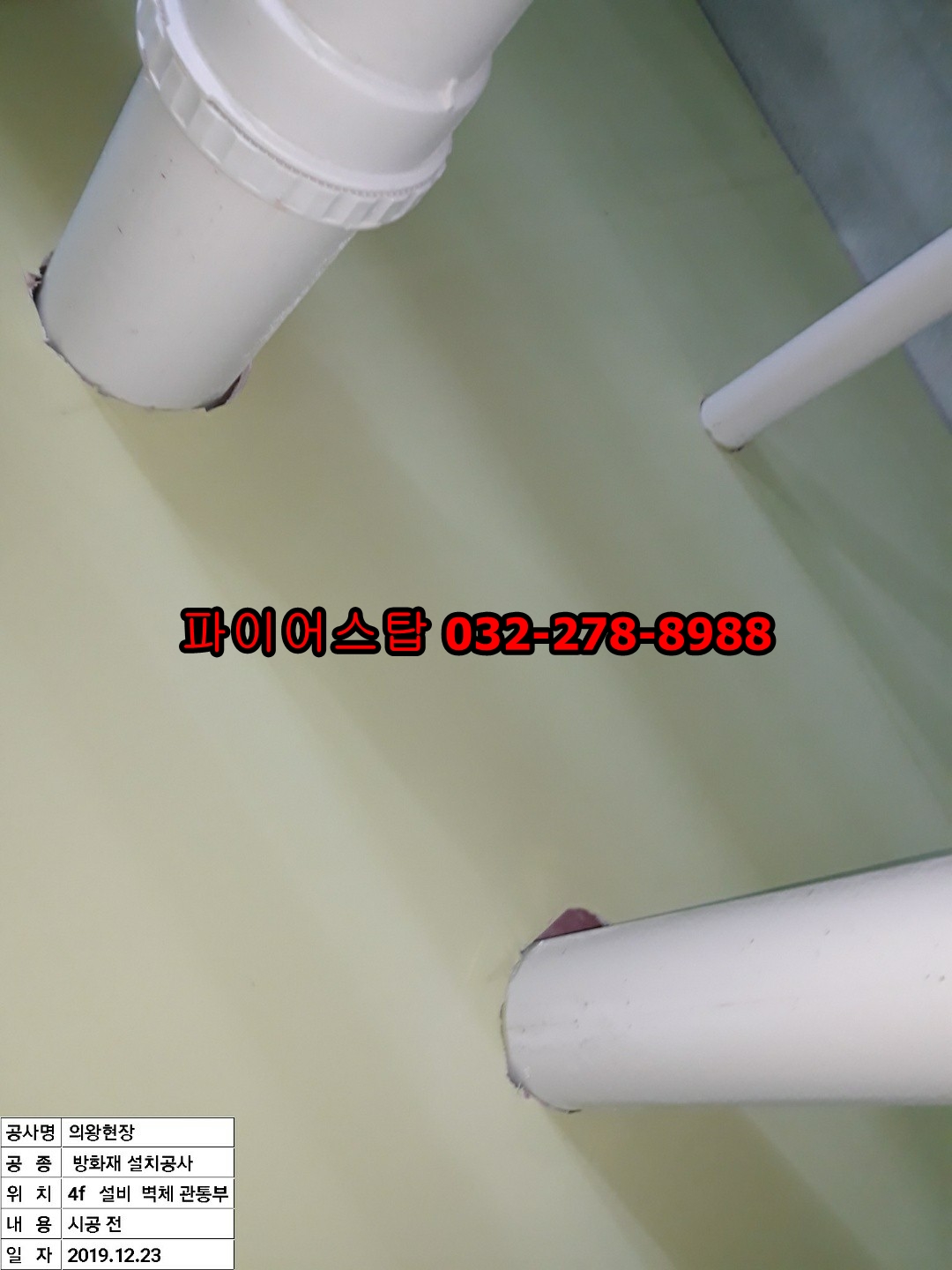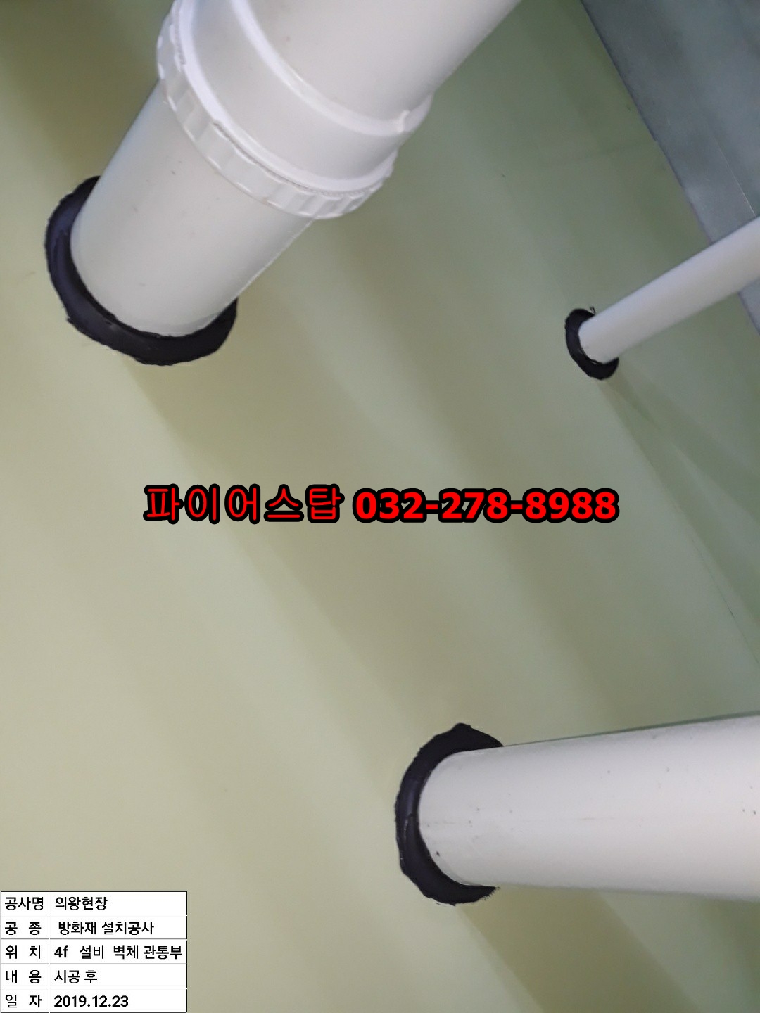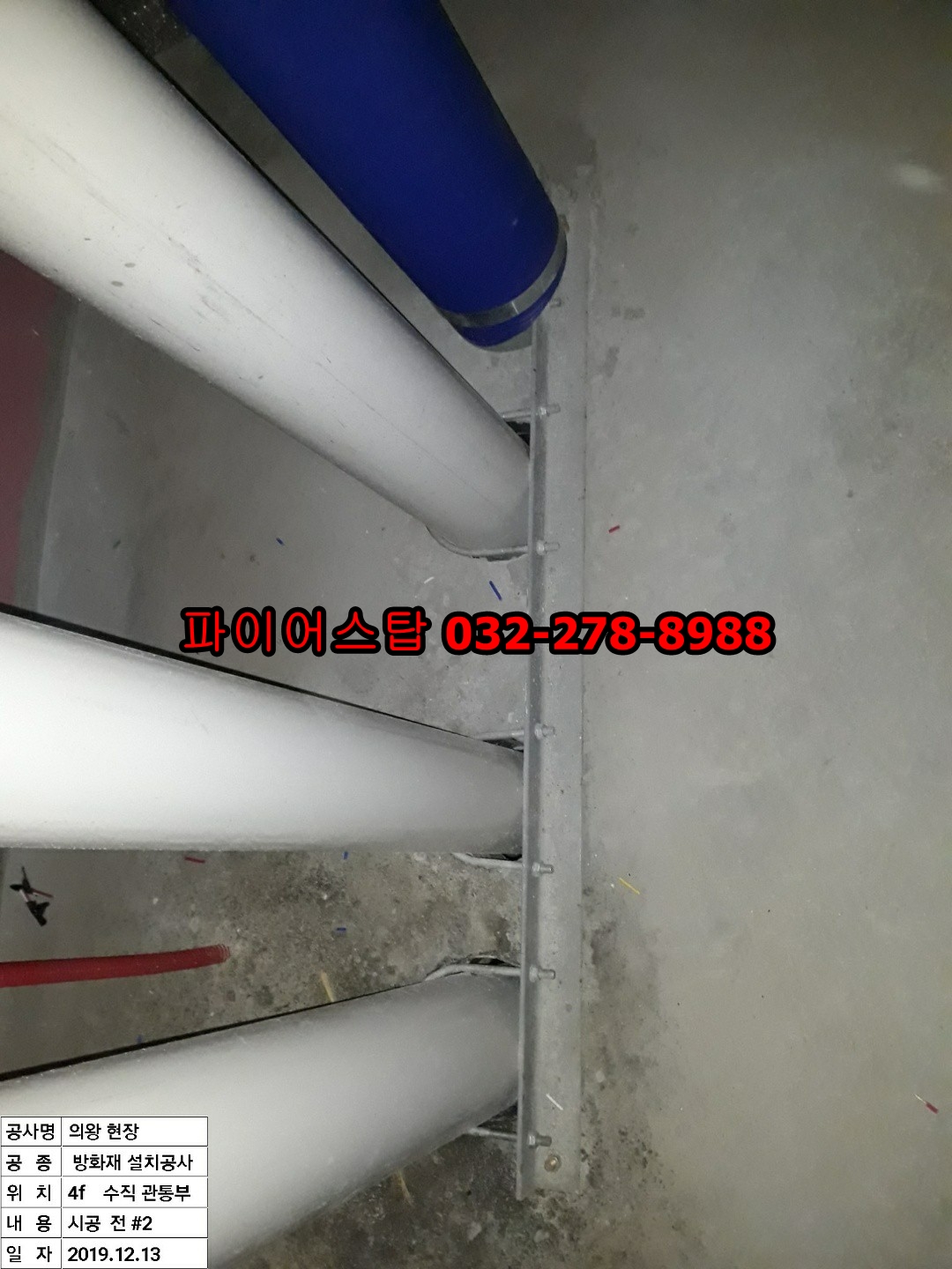 경기도 의왕시 이동의 신축현장에서 설비소방내화충전공사를 진행했습니다(19/12). 4F